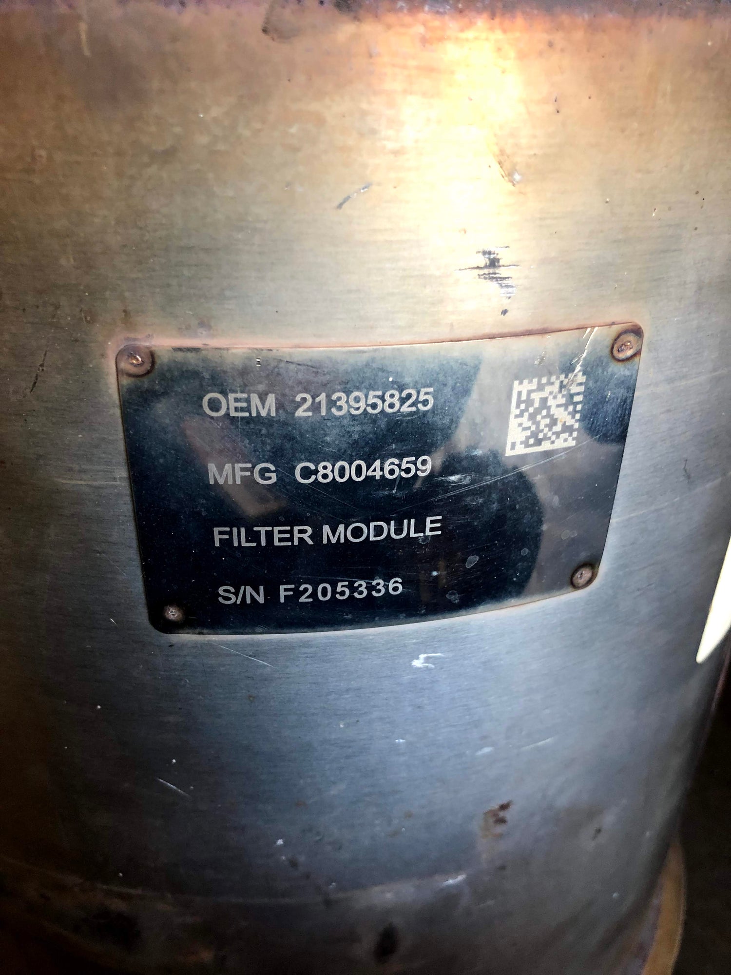 - Cummins DOCs have their part number and serial numbers usually etched in seperate locations; the serial number is accompanied by the etching of the word catalyst.